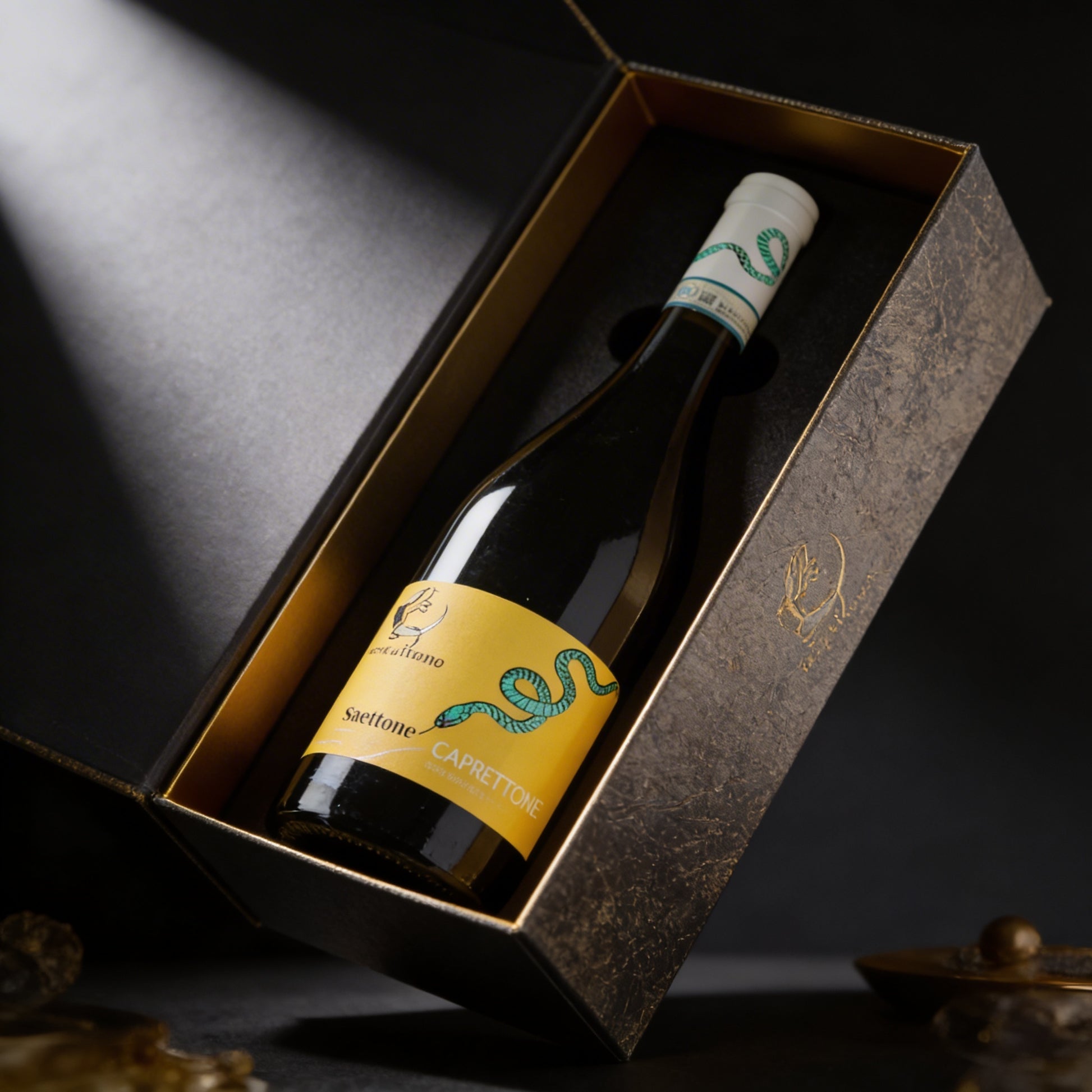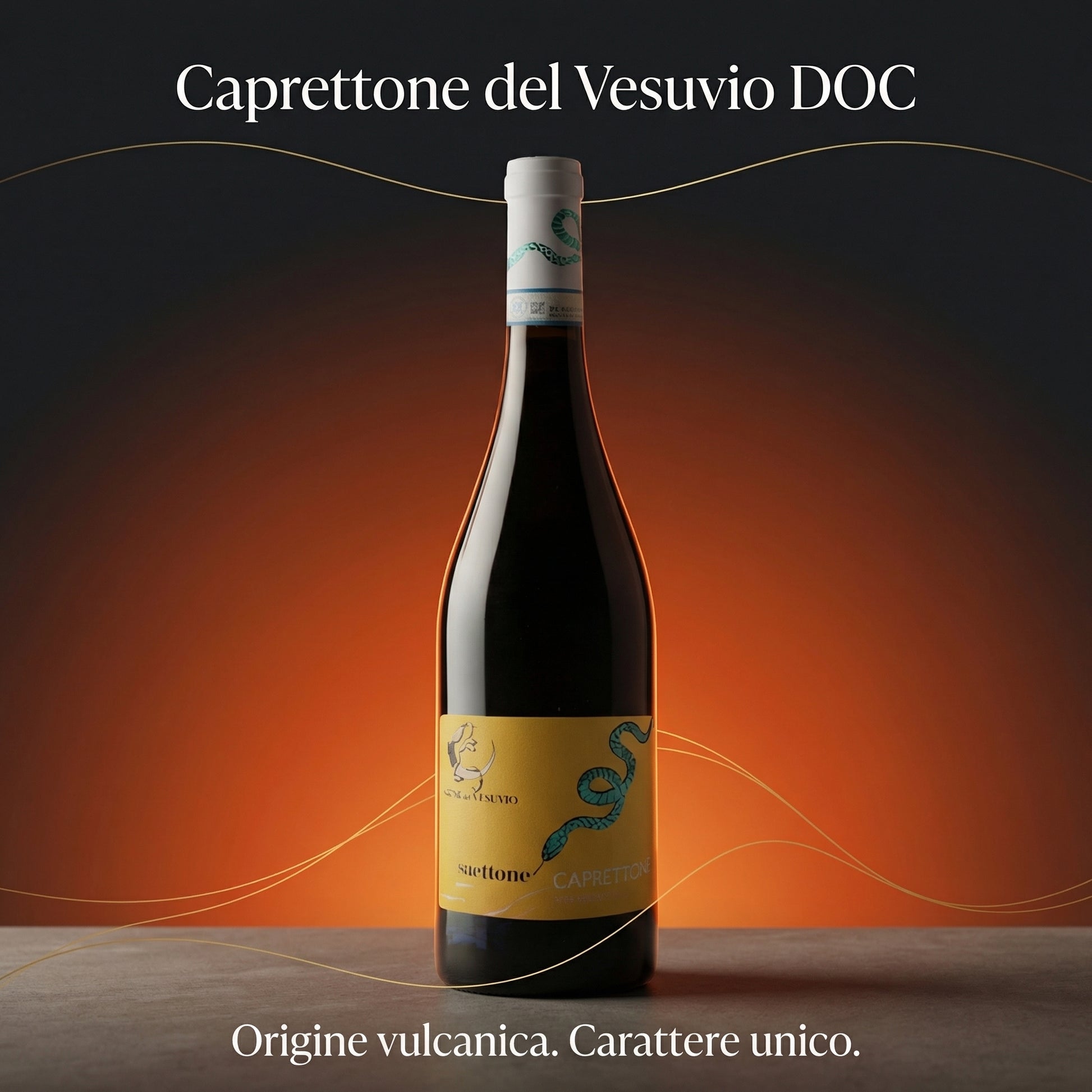 The Saettone, a non-venomous snake, gives its name to this wine because it finds its ideal habitat in warm and sunny places among the Caprettone vineyards,