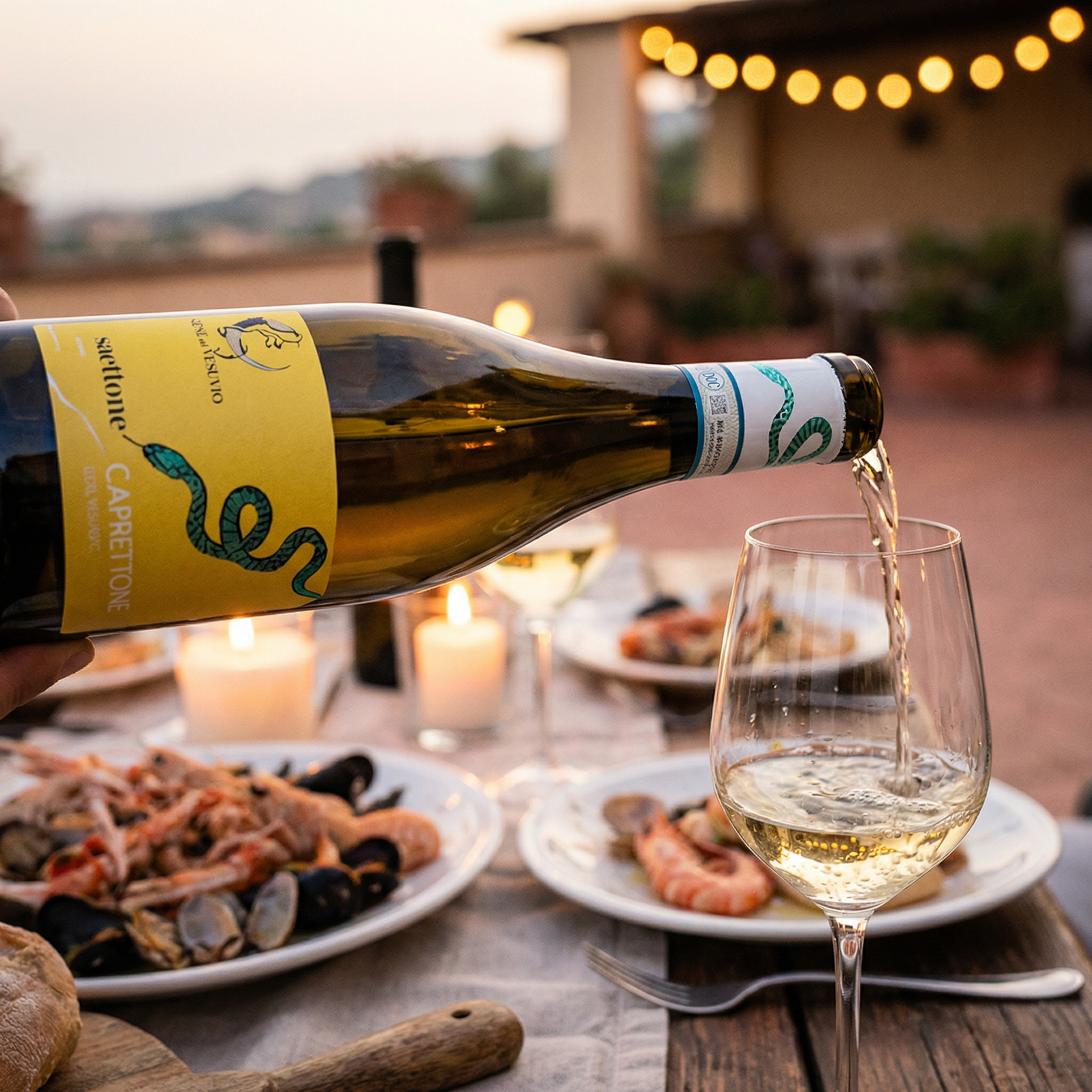 White wine from Caprettone grapes grown exclusively on the slopes of Vesuvius.