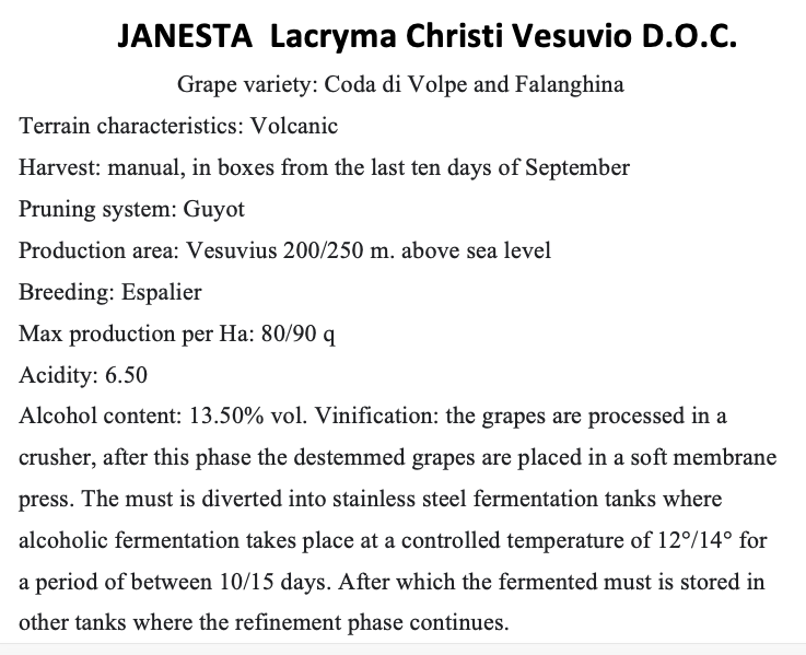 Janesta Lacryma Christi del Vesuvio Bianco DOC